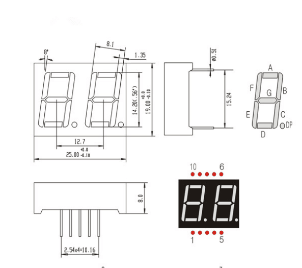 2位数共阳共阴红光蓝光led数码管显示屏模组 立即咨询