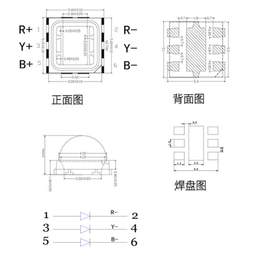 5054RYB红黄蓝三色 0.2W 660nm 590nm 460nm led灯珠 立即咨询