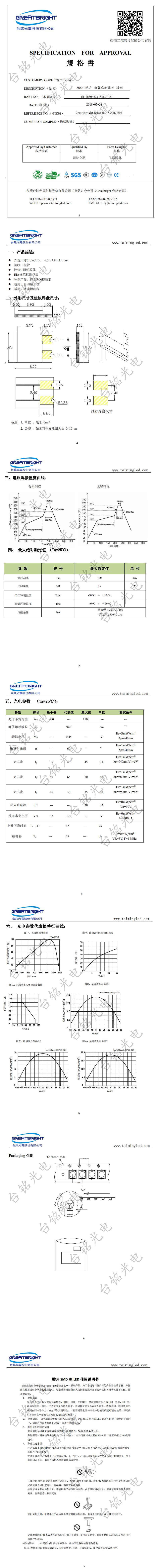 6048贴片式血氧仪红外接收管