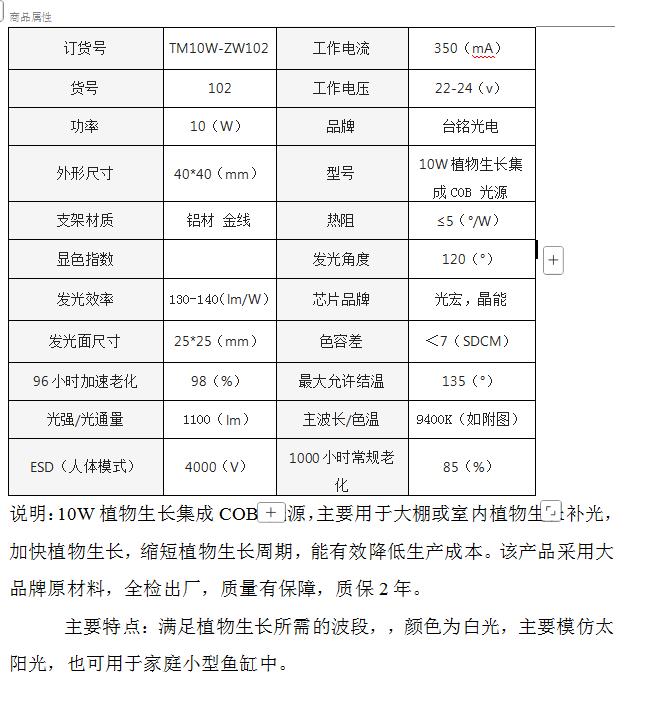 10W植物生长集成COB 光源,主要用于大棚或室内植物生长补光,加快植物生长,