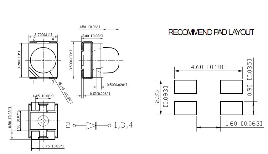| Type 规格/型号 | Emitting Color 颜色 | Material 原材料 | View Angle 发光角度 | VF(V) 电压 | IV (MCD) 亮度 | WL(nm) 波长 | IF(MA) 电流 | |||