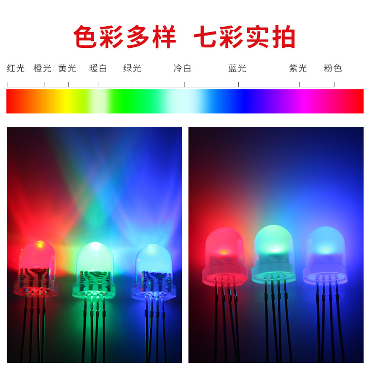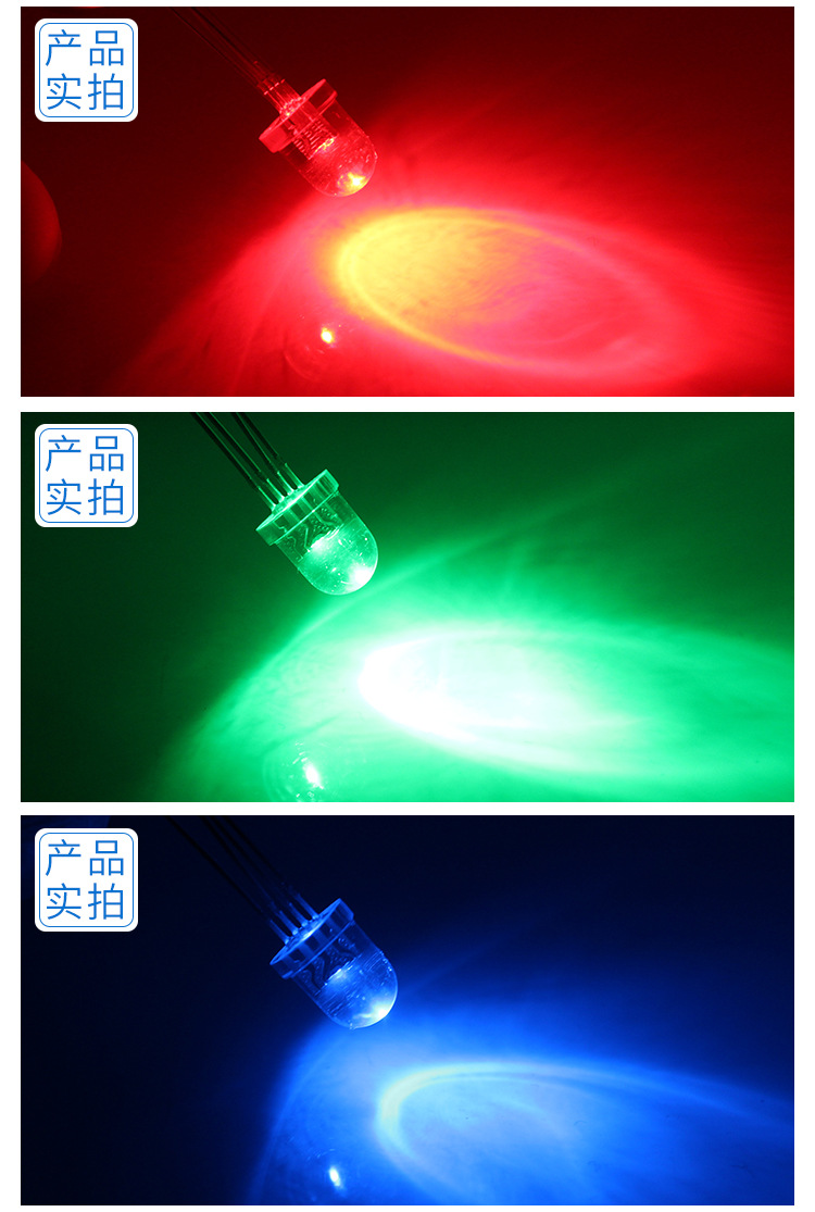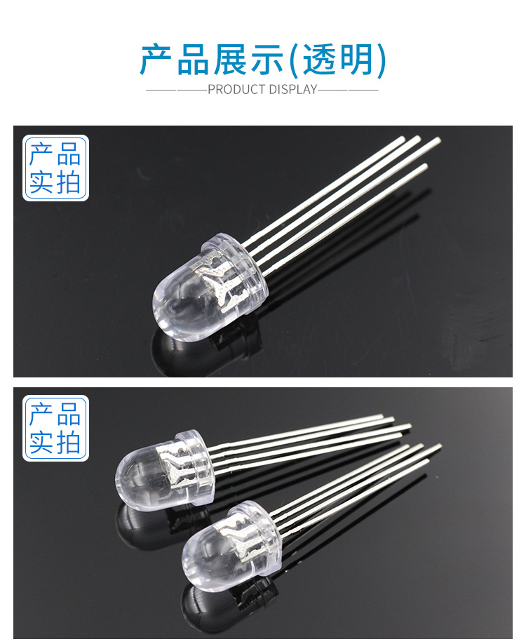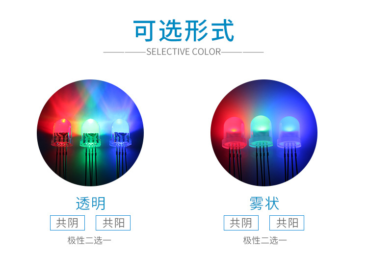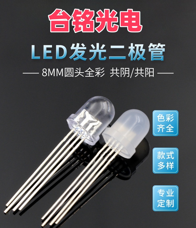 • 尺寸:直径8mm,圆头直插式RGB。