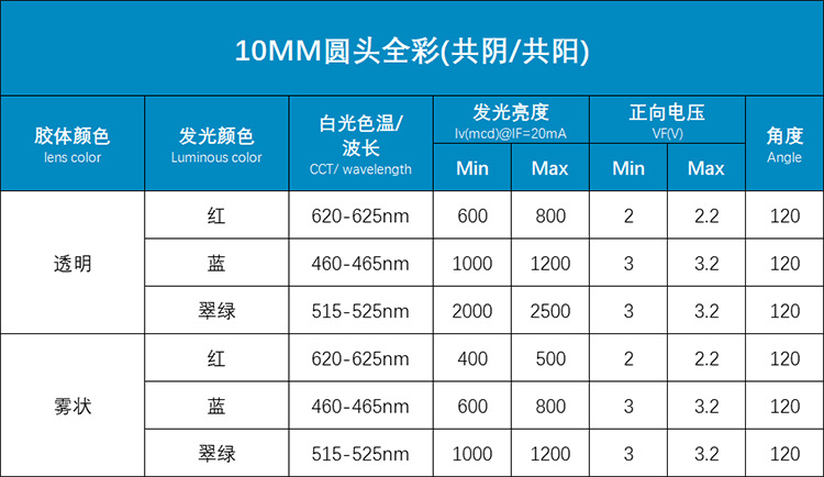以下是关于 AG恒峰光电F10/10mm 圆头全彩RGB高亮共阴/共阳直插LED灯珠 的详细信息整理,供您参考: