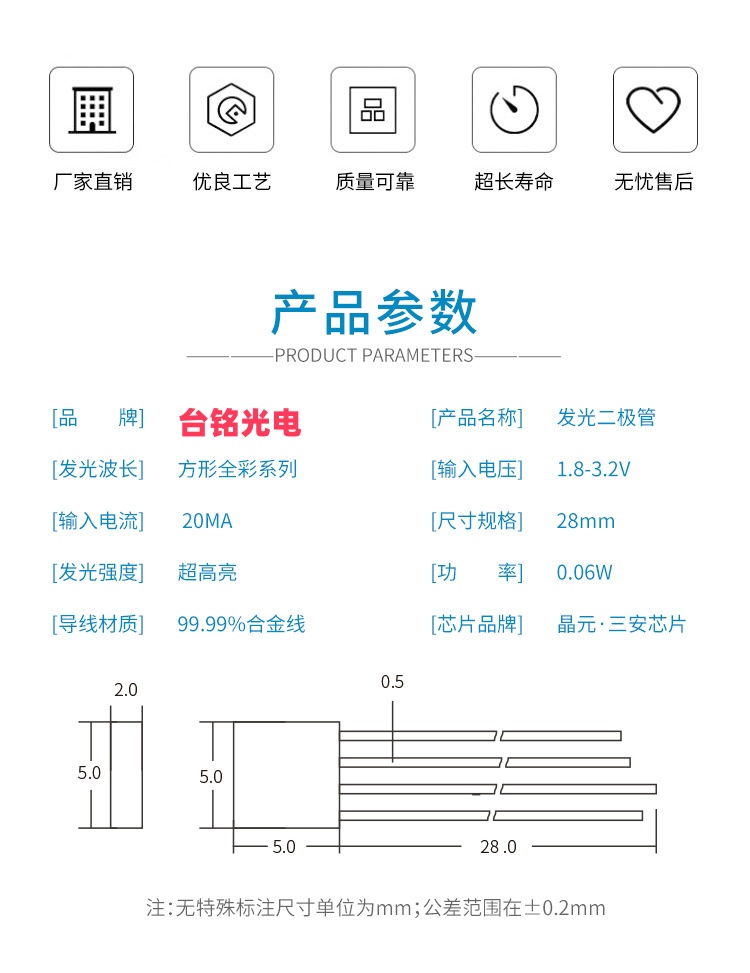 亮度:高亮型(具体光强需参考规格书,通常≥1000-3000 mcd)。