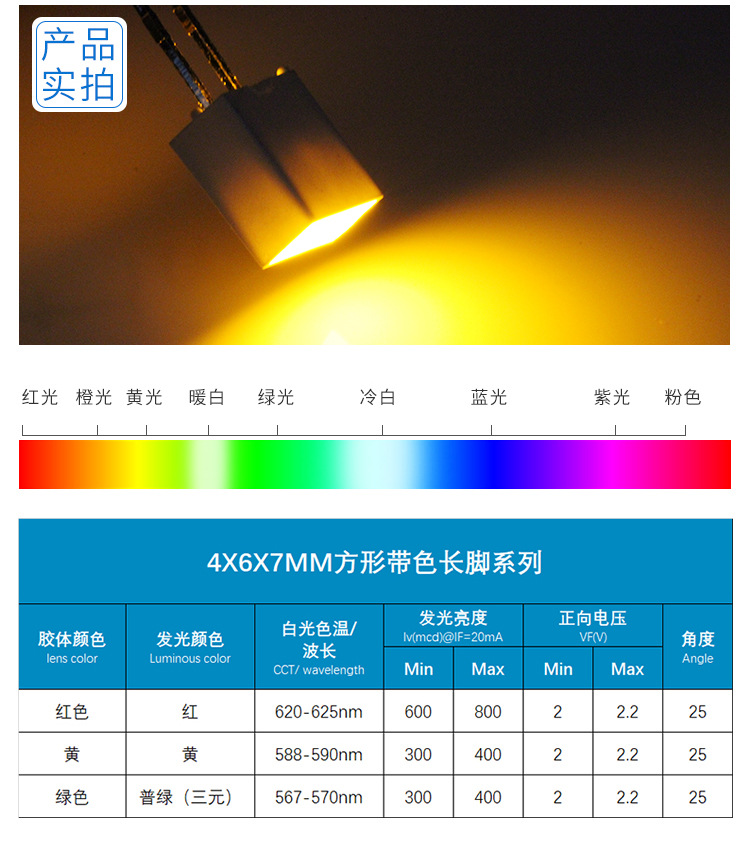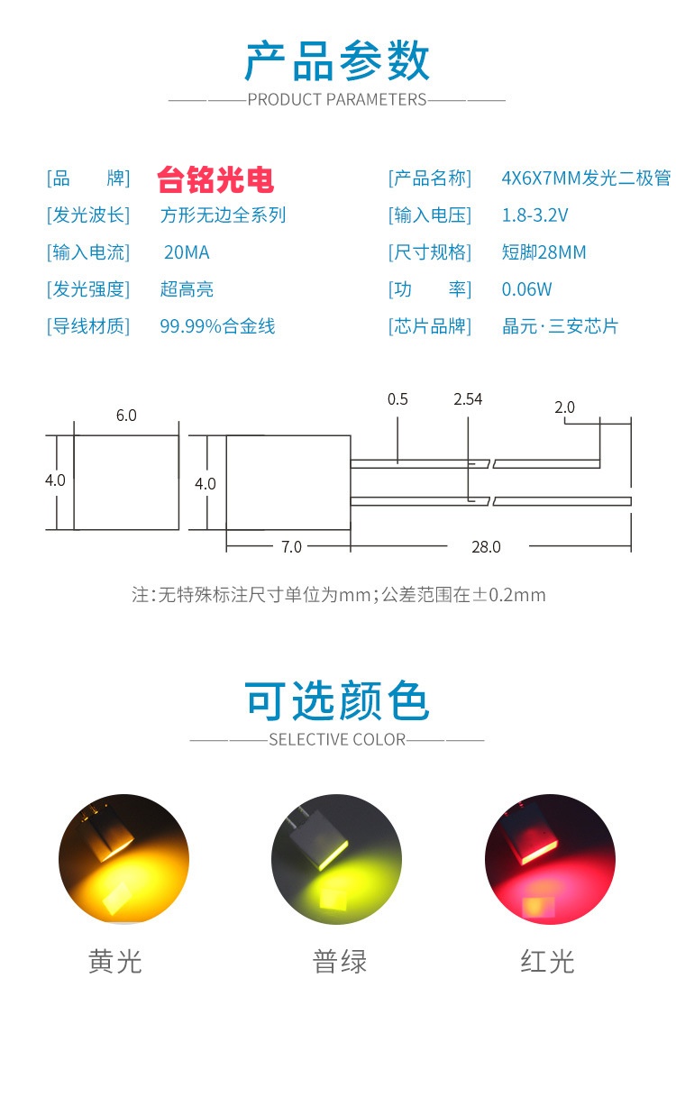 AG恒峰光电4×6mm 长方形平面显示信号白壳 LED 灯珠(红、黄、蓝、绿、橙) 通常用于 指示、状态显示或信号提示 等场景。