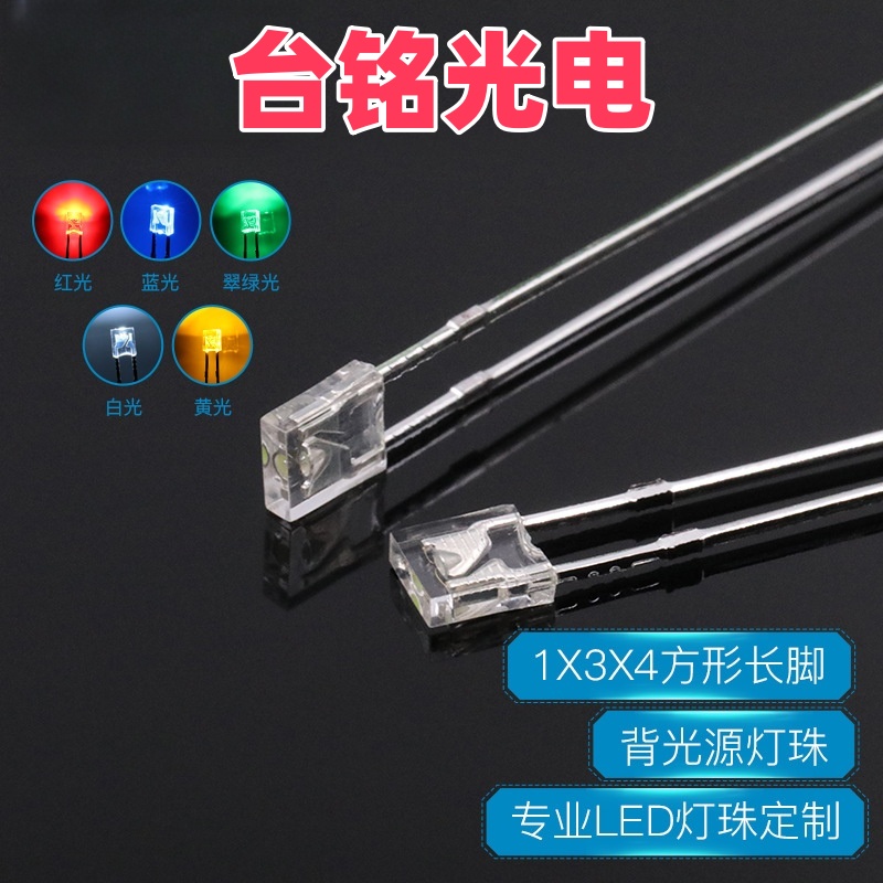 背光源1x3x4方形长脚透明LED灯珠134白光蓝红翠绿黄色直插发光管