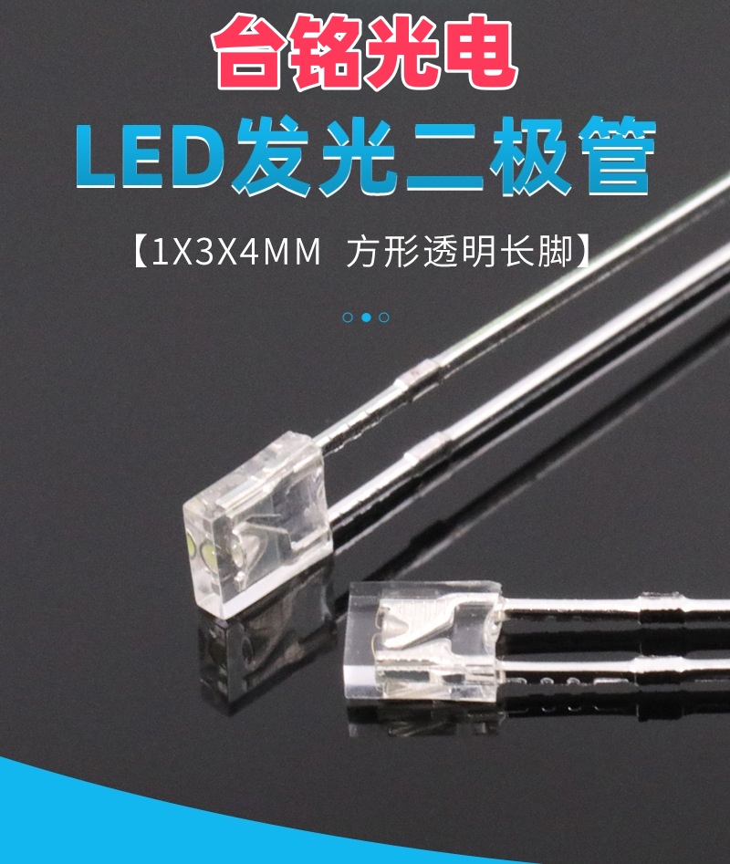 AG恒峰光电1×3×4mm 方形长脚透明直插LED灯珠(白光、蓝光、红光、翠绿光、黄光) 是一种小型化、高精度的 DIP