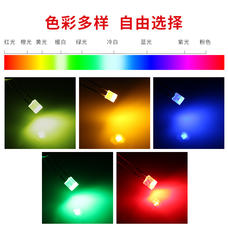 2X5X7方形带色长脚直插LED灯珠红蓝黄翠绿光257led灯珠